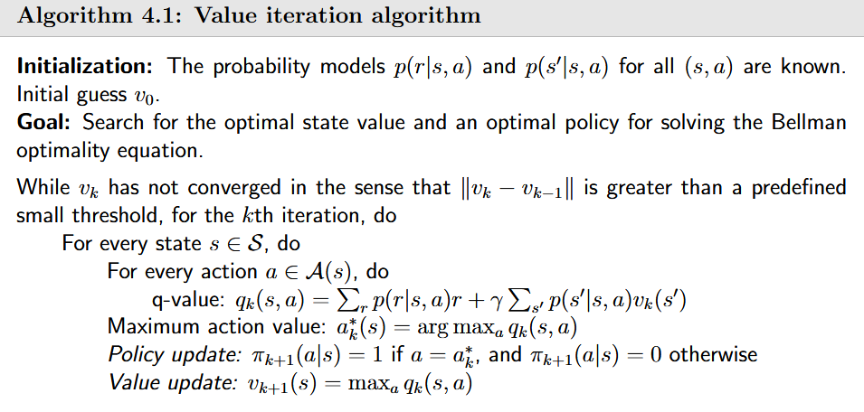 v_{k+1}=\max_{\pi\in\Pi}(r_\pi+\gamma P_\pi v_k) -