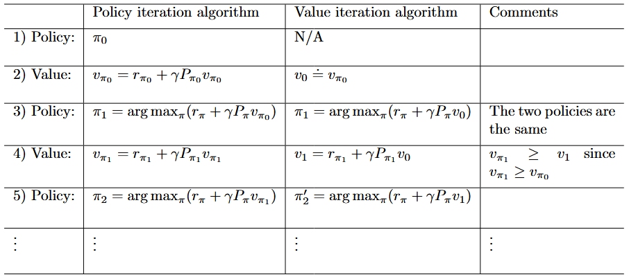 \pi_{k+1}=\argmax_{\pi}(r_\pi+\gamma P_\pi v_{\pi_k})