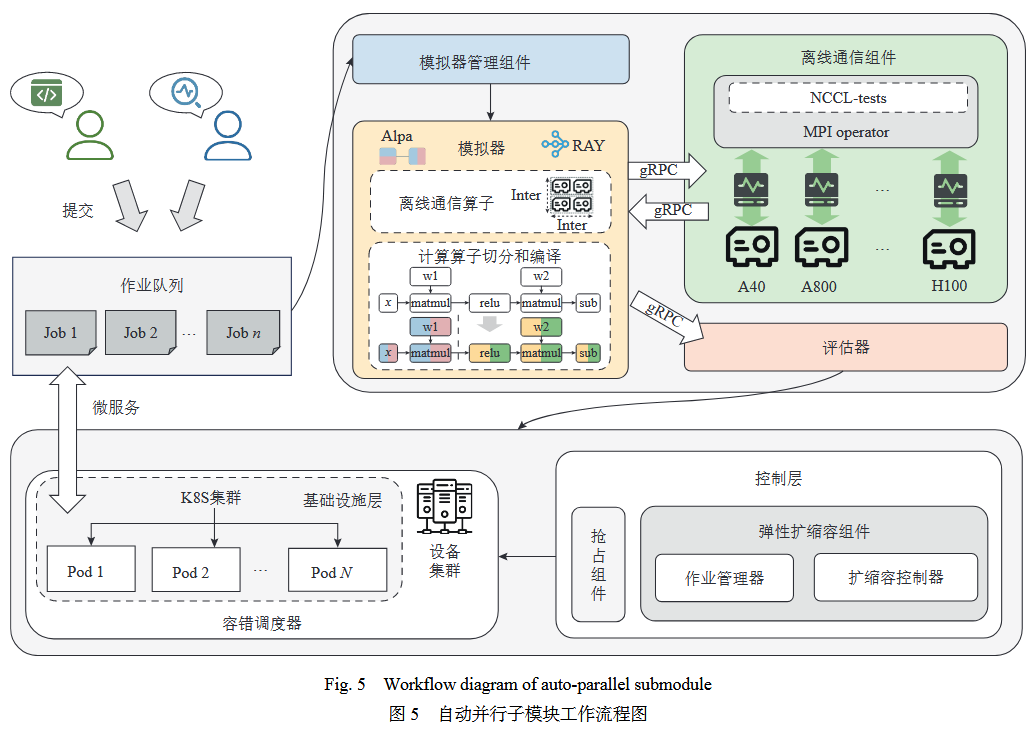 模拟器实例接收由模拟器管理组件传入的 GPU 资源类型、资源个数和流水线并行度,自动搜寻当前配置下的最优自动并行策略并评估模型的端到端时延