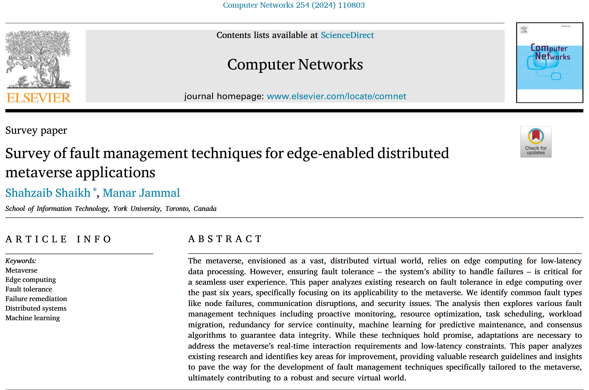 元宇宙要求高效故障管理以保障用户体验连贯一致,对边缘计算是一种挑战,因此总结了近6年(18-24)的容错研究